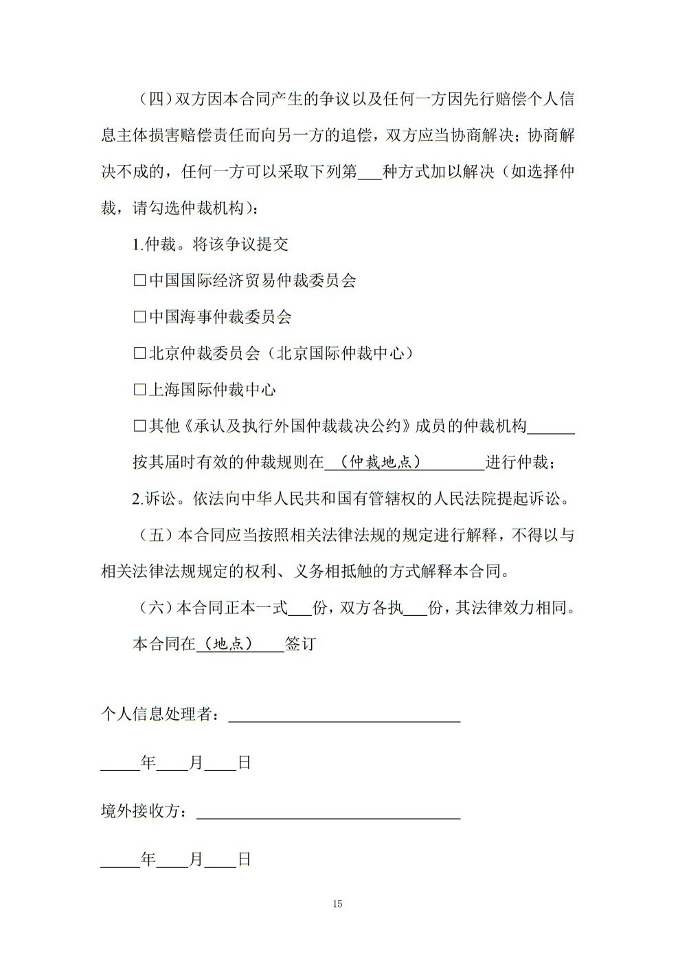 個(gè)人信息處理者可以與境外接收方約定其他條款,但不得與標(biāo)準(zhǔn)合同相沖突。