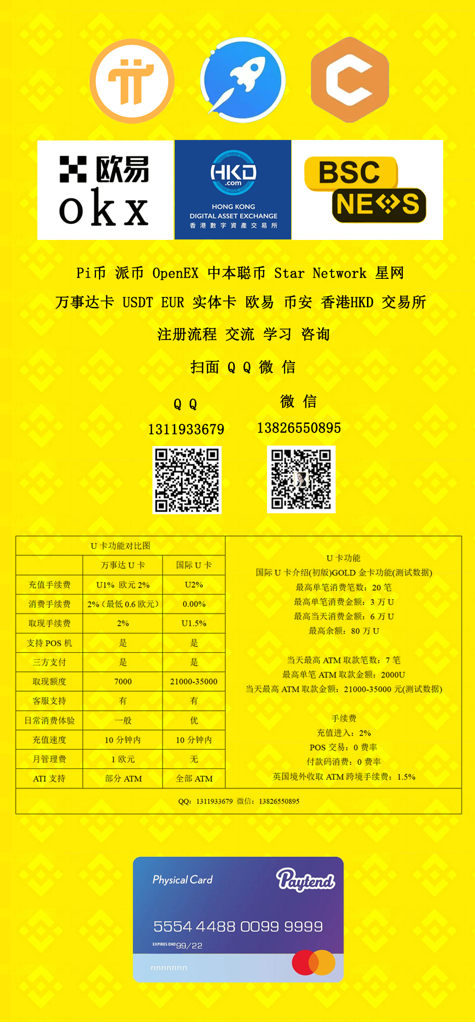 萬(wàn)事達(dá)卡 USDT EUR 實(shí)體卡 歐易 幣安 香港HKD 交易所