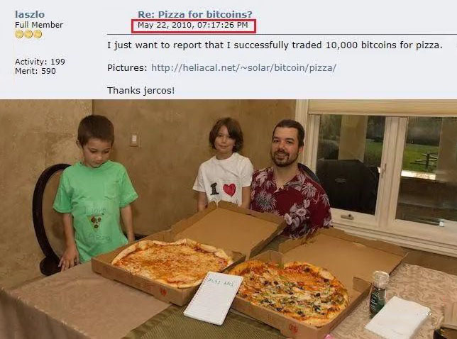 具有歷史意義的日子,就是在加密圈內(nèi)大家都喜歡調(diào)侃的節(jié)日——5.22披薩節(jié)