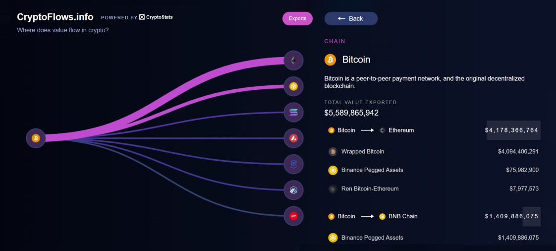 目前比特幣市值5000多億,大約50多億美金的比特幣跨鏈流出到以太坊等公鏈生態(tài)參與DeFi,同時因為比特幣生態(tài)發(fā)展原因,只有流出而幾乎沒有流入