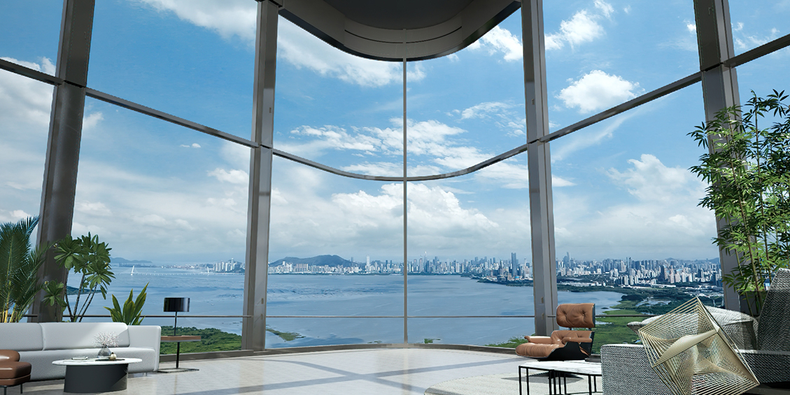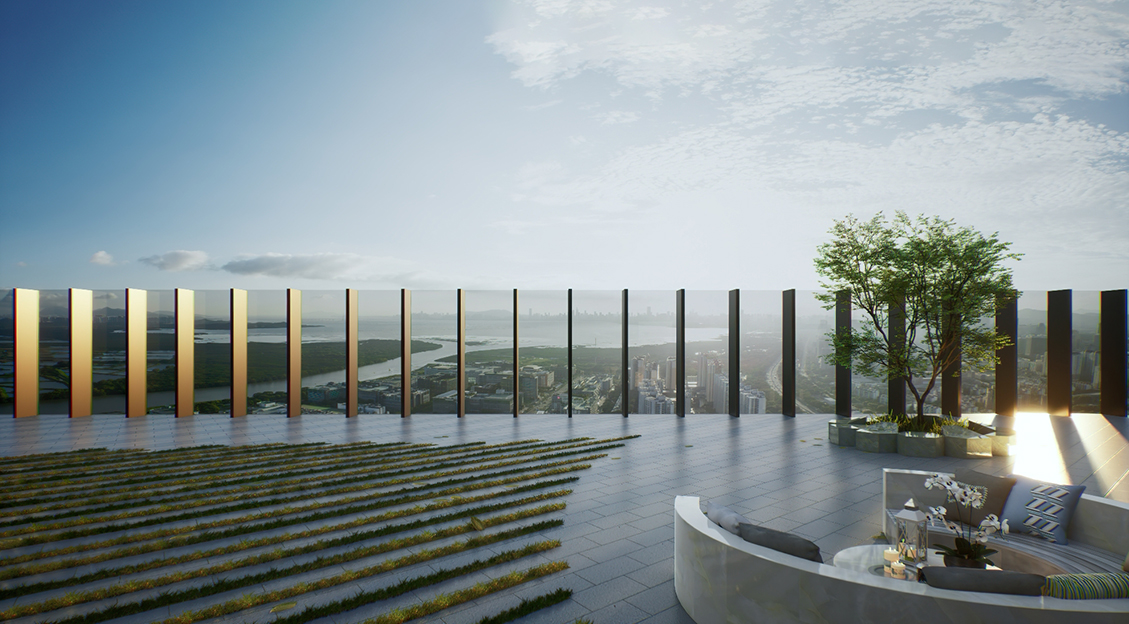私屬空中大堂約:9m 通高(預(yù)留上下水安裝條件):隨享自然生態(tài)與繁華城市風(fēng)光
