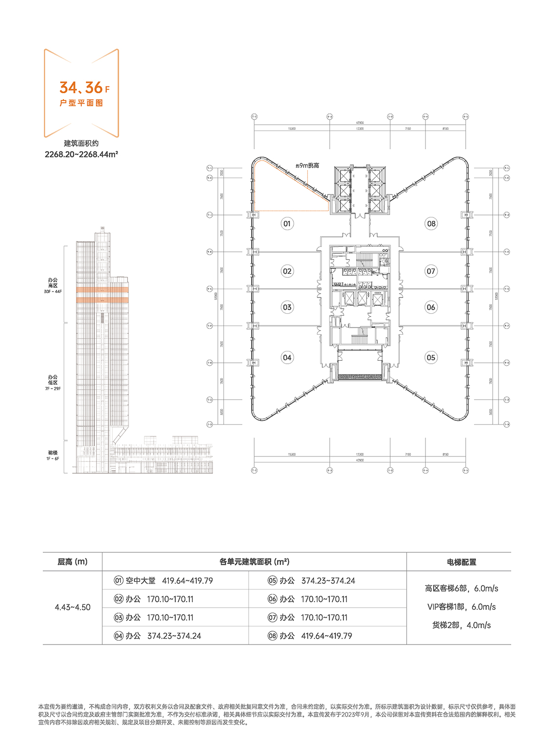 河套壹號:34到36F:戶型平面圖:建筑面積約:2268.20平米到2268.44平米