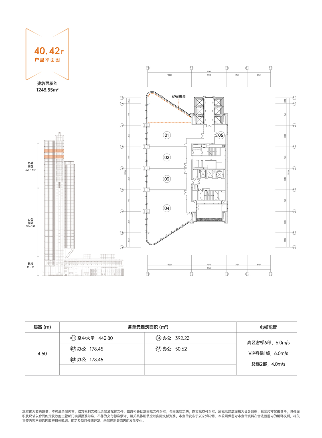 河套壹號:40到42F:戶型平面圖:建筑面積約:1243.55平米