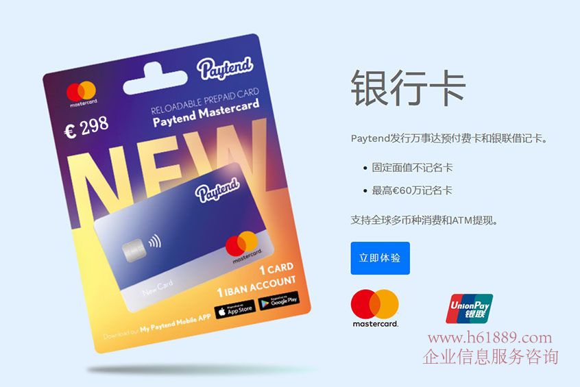 Paytend是一家專注于國際支付的電子貨幣機構(gòu)、Paytend實施創(chuàng)建具有自主知識產(chǎn)權(quán)的全業(yè)務(wù)支付平臺、為個人和企業(yè)提供安全可靠的支付服務(wù)、Paytend已和萬事達達成合作協(xié)議拓展萬事達卡的發(fā)卡業(yè)務(wù)、同時已和VISA和銀聯(lián)國際達成初步的發(fā)卡協(xié)議、致力于滿足全球用戶的用卡需求