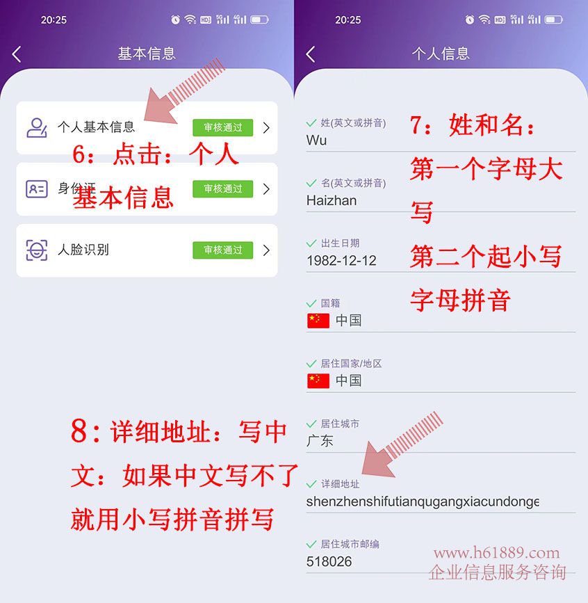 6:點擊:個人基本信息、7:姓和名:第一個字母大寫、第二個起小寫字母拼音、
