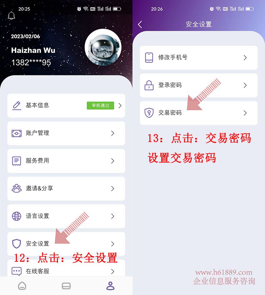 12:點擊:安全設(shè)置、13:交易密碼:設(shè)置交易密碼