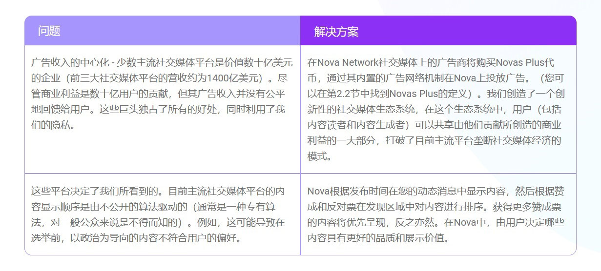 代幣的用處 - 對(duì)于Nova從廣告收入中的每一美元,其中一部分將用于回購代幣。因此,用戶(包括內(nèi)容讀者和內(nèi)容生成者)將真正擁有并從他們的內(nèi)容中獲利,共享他們積極參與所帶來的商業(yè)利益。
