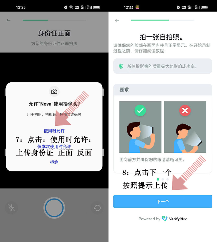 7:點擊:使用時允許:上傳身份證:正面 反面