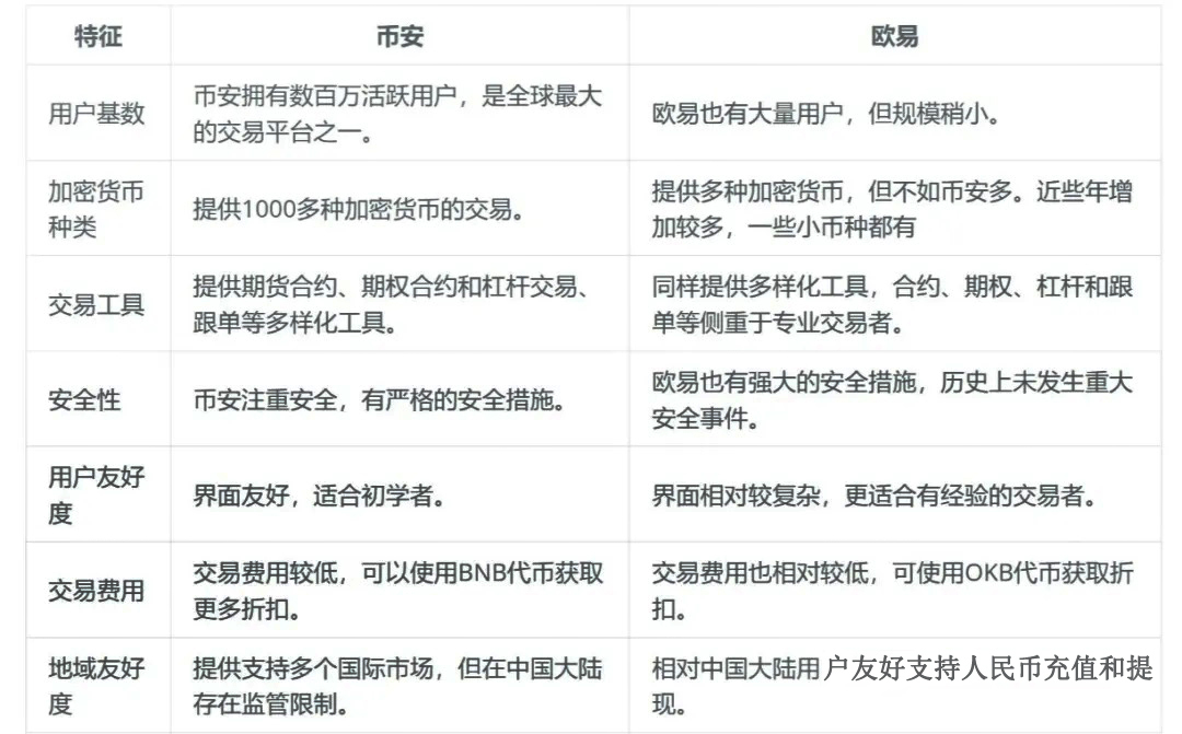 幣安交易所:BINANCE 歐易 OKX 交易所 特征對(duì)比分析