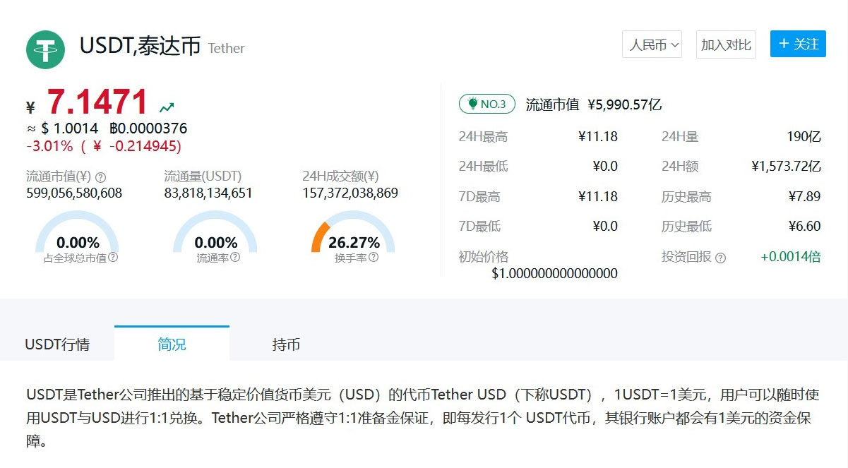 USDT 對(duì)人民幣的匯率
