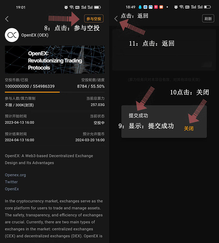 5:點(diǎn)擊:返回:回到首頁開啟空投