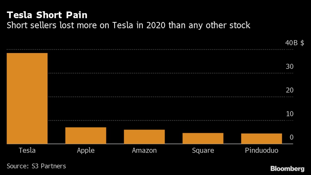 這一年特斯拉空頭們的損失接近400億美元:創(chuàng)造了歷史