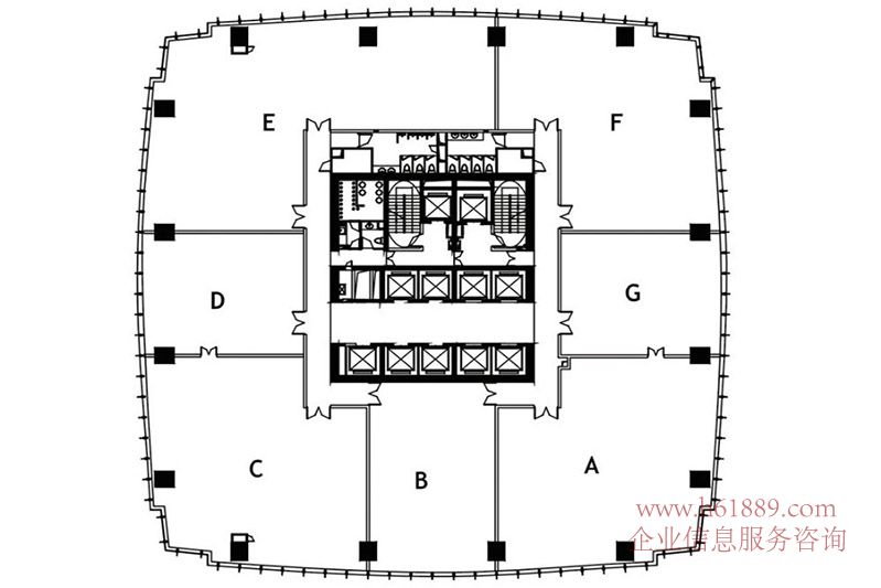 工程層高4.2米、吊頂后凈高可不低于 2.8米、尤其配合單層約2000 m2 開闊面積、更顯國際企業(yè)風范、空間開闊高敞、便于規(guī)劃、滿足不同功能需要、充分考慮國際人士尺度需求、適合全球商務人群、整層除核心筒外、僅余16根立柱、中間無柱、內部隨意布局、空間利用最大化、中高區(qū)75%的實用率、全城罕有